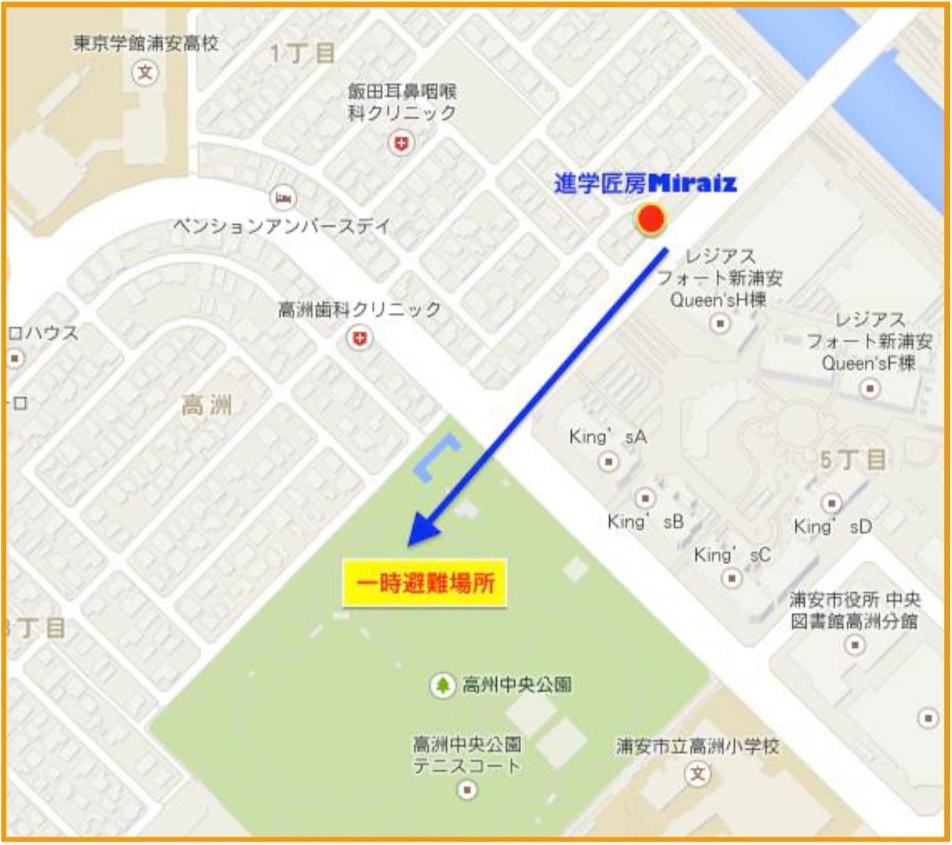 避難は自治体からの勧告がある場合、または教室建物への大きな被害や火災などで、留まっていると生徒に危険がある場合に限ります。大きな危険がなく、自治体の指示もない場合には、教室にて待機させ、保護者の方のご要望に沿って、帰宅させるか教室にてお預かりいたします。