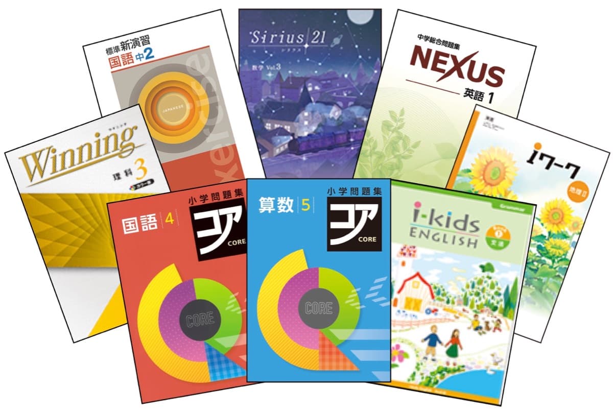 教材費は所定のテキスト代のほか、塾内テスト費、授業で配布するプリント費、中学校別の定期テスト対策プリント作成費、講習テキスト費、生徒の皆さんに開放しているコピー機の維持費などが含まれています。学年や受講科目によって異なりますので、くわしくは会費一覧をご覧ください。