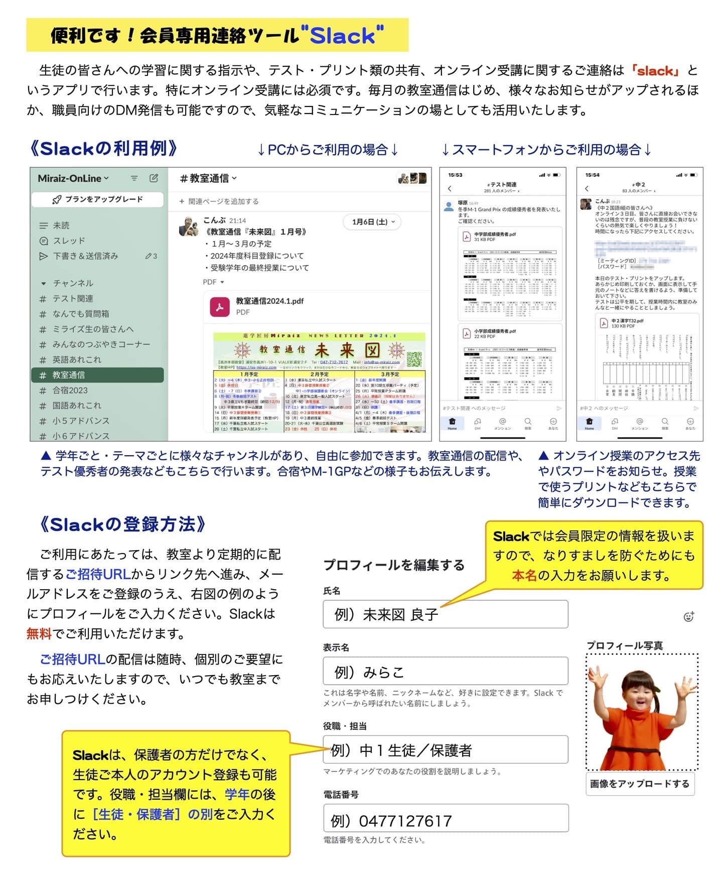 オンライン授業のお申込をいただきましたら、Miraizより会員用Slack(要登録)を通じて、Zoomミーティングの受講URLを配信いたします。
