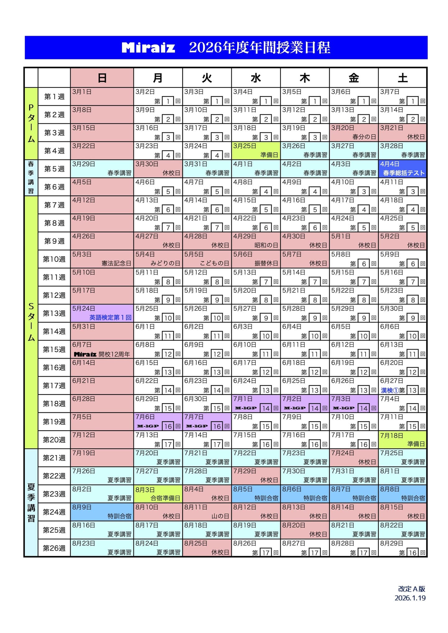 中学受験で学ぶ内容は実に多様で、相当量の学習を要します。Miraizでは、小4は塾通いや勉強の基礎習慣を身につける期間と位置づけ、授業の受け方、ノートの取り方、宿題のやり方から丁寧に指導します。小5からはいよいよカリキュラムも本格化しますが、必要以上のプレッシャーや極端な方法論を排し、ひとりひとりの目標に向けてやるべきことを整理し、明るく・厳しく・温かく指導いたします。あくまで小学生らしい健全な生活や家族との時間を重視し、いたずらな長時間の拘束は避け、授業は夜7時15分までの設定です。「中学受験新演習」と「アタックテスト」を採用し、無理・無駄のない進度で着実に入試に必要な学力を養成します。